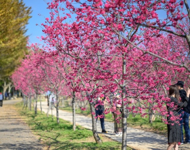 - 八重櫻: 打頭陣的先鋒,通常 1月下旬到2月中旬 盛開最旺。花色深粉紅、花型飽滿,氣勢十足。但也是最早開完的。