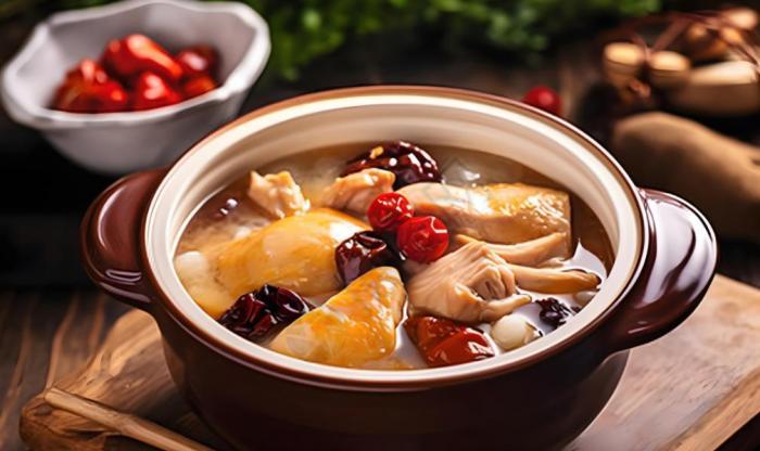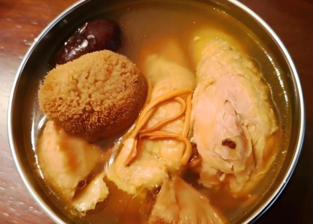 燉湯材料準備:在燉盅或湯鍋中,放入處理好的雞塊、泡發好的猴頭菇和枸杞。可以根據個人口味,加入適量的瑤柱(乾貝)來提升湯的鮮香味。