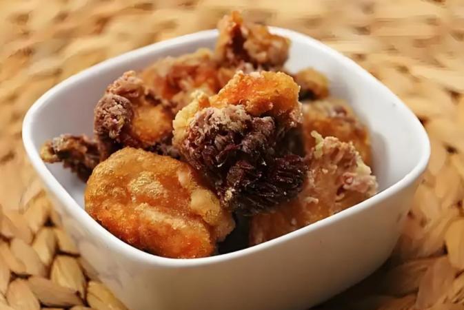 炒糖色:鍋中放少量食用油,加入白糖,小火加熱,待糖開始融化並變成琥珀色時,迅速加入泡發好的猴頭菇塊,快速翻炒均勻,糖色均勻裹在猴頭菇表面。